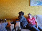 He is the biggest wuss ever though. If somebody comes into murder me he will puke and pee all over himself lol. When he see's another dog he lets out a "little woof" just so I can see him and he wags his tail at me but the other dog cant hear him lol. He is three yrs old now. I love my pound puppy to death . He is a border collie part lab but more border in him.